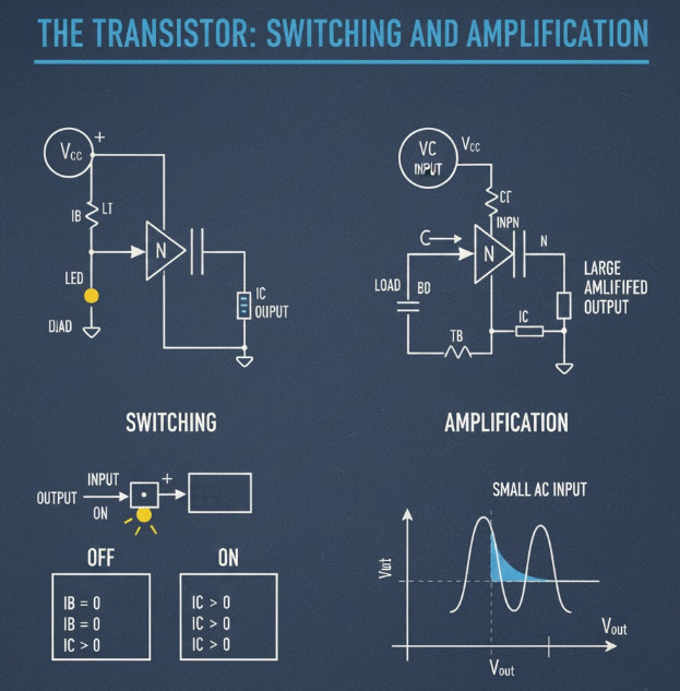 ⚙️ The Transistor: Switching and Amplification